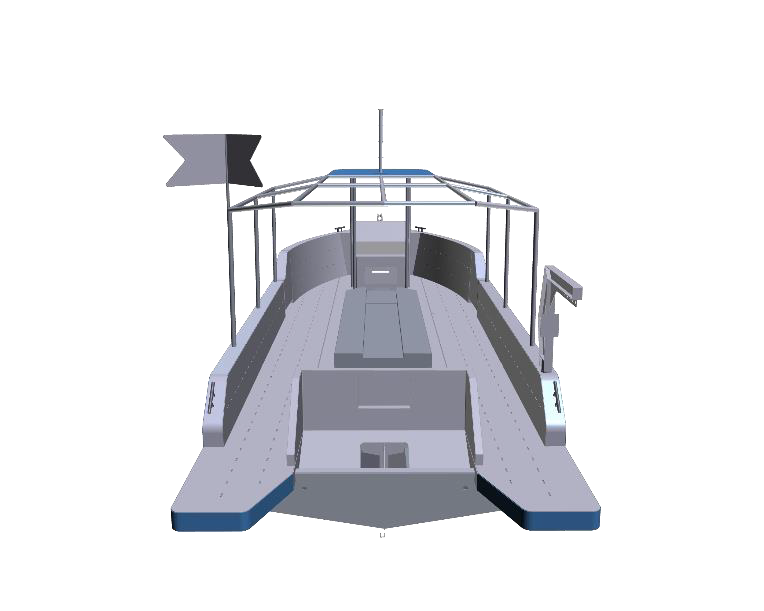 Cette carène possède des entrées d’eau fines pour faciliter le passage à la mer. Le redan d’étrave ou « barbe » permet de limiter le spray. Une grande attention est apportée sur la répartition du volume pour avoir un comportement sain par mer trois quart arrière ou vague rattrapante.